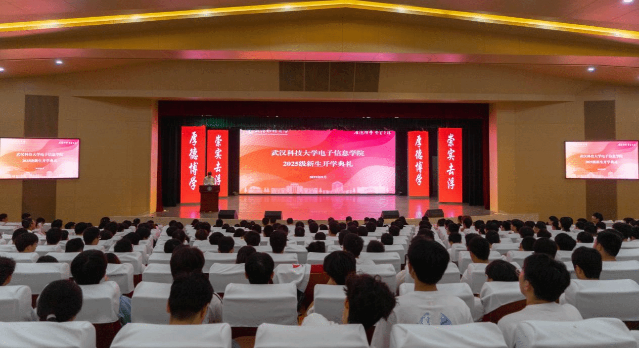 高年级学生代表赵若婷和新生代表陈博伟先后发言。陈博伟代表全体2025级新生表示,将尽快完成从高中到大学的过渡,找准前行方向、夯实专业本领、丰富大学生活。他承诺将以饱满的热情刻苦钻研,在电子信息领域书写自己的精彩篇章。