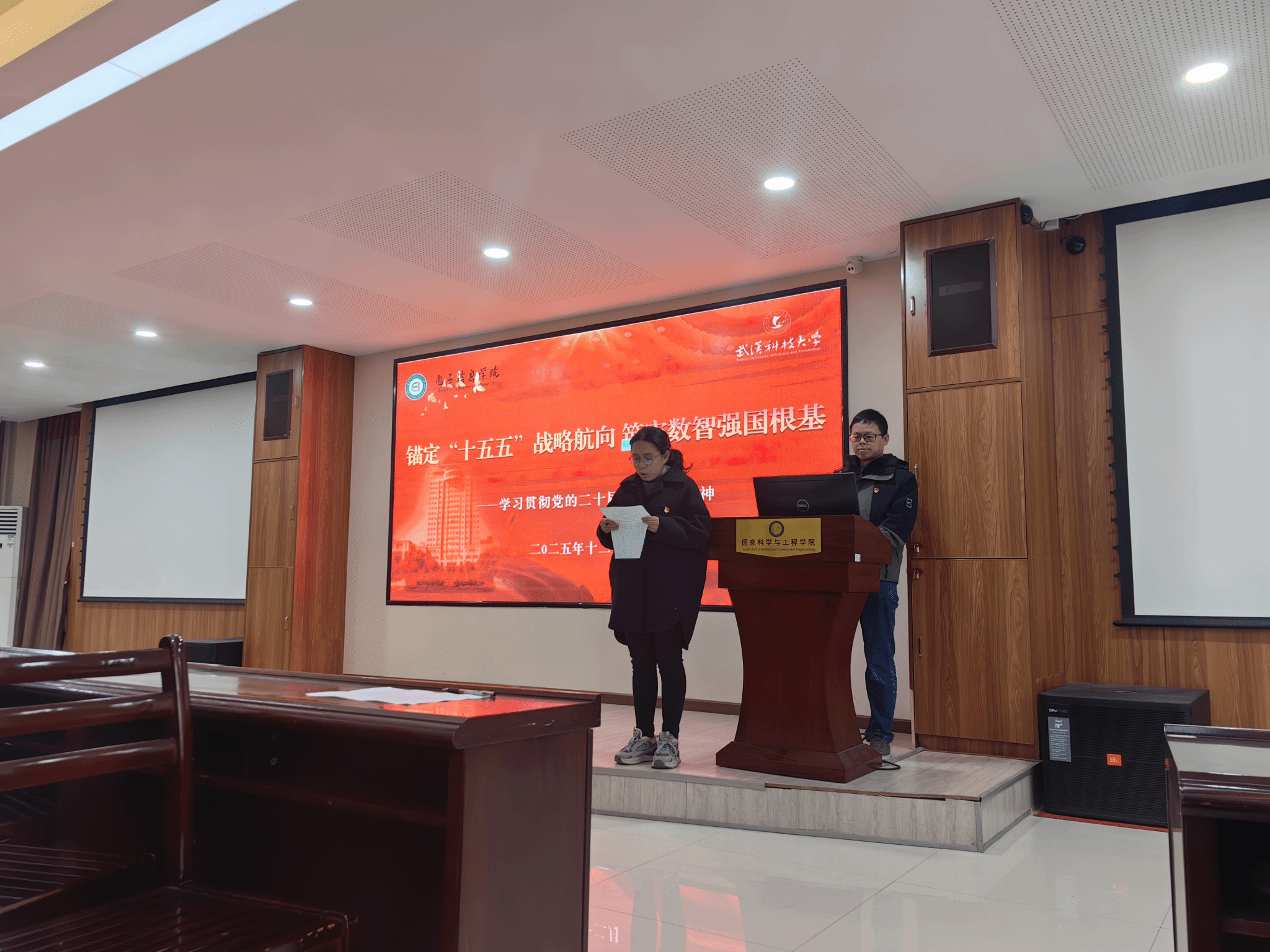 微电子系教工党支部书记、教授程用志以“锚定‘十五五’战略航向 筑牢数智强国根基”为主题开展宣讲,学院全体本科生、研究生党员及发展对象出席活动。